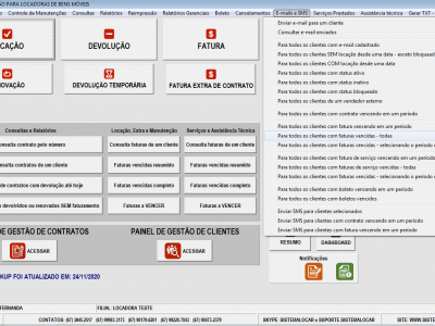 Algumas operações, como por exemplo, faturamentos, boletos e orçamentos podem ser realizadas no SISTEMALOCAR e os documentos gerados são convertidos em PDF e enviados por e-mail para o cliente.