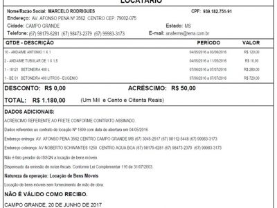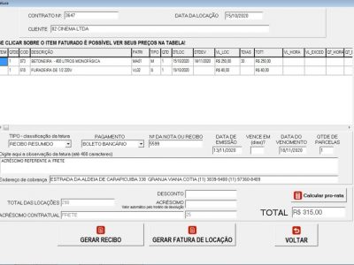 - Faturamento extra sem contrato de locação: Faturamento de itens consumíveis ou serviços que NÃO estão atrelados a um contrato de locação.