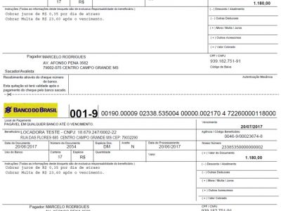 O SISTEMALOCAR emite boletos e remessas e ainda faz a leitura do retorno para a baixa automática dos boletos recebidos. Esta funcionalidade está disponível para os seguintes bancos: Banco do Brasil, Caixa Econômica Federal, Bradesco, Itaú, Safra, Santander, Sicredi e Sicoob.