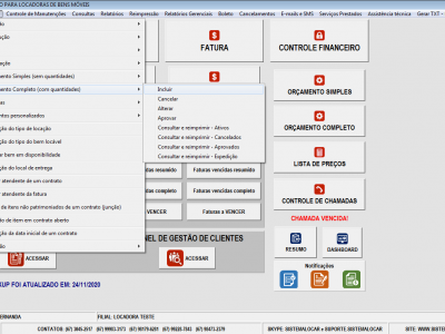 O SISTEMALOCAR possui um módulo de gestão dos orçamentos realizados. Neste módulo é possível realizar dois tipos de orçamento, denominados simples e completo.