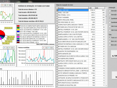 O DASHBOARD do SISTEMALOCAR tem gráficos, comparativos e listagens de forma clara e ágil. É possível analisar a evolução de clientes novos, mapa de ocupação dos bens com quantidades e valores, faturas emitidas e recebidas, entre outros.